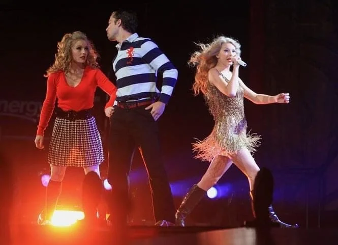 photos L to R: Meredith performing on silks for Cirque del Mare; onstage with Taylor Swift for the Speak Now World Tour; on lollipop hoop for a private event in Hollywood